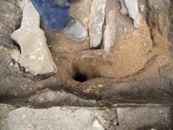 ... to fully expose a metal ring on top of a brick foundation, September 2013. (1 ft scales)