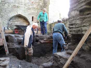 Repairing part of the north-east wall of the Old Boiler House, October 2014