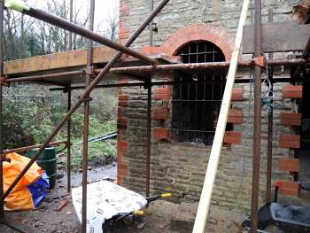 Repair work in progress to the wall of the Cornish Engine House, November 2012.